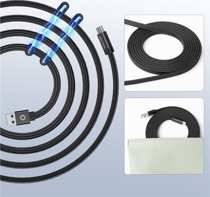 Ten szybko ładujący się, wytrzymały, magnetyczny kabel USB-A na USB-C o długości 1 m pozwala utrzymać porządek na biurku! Jego magnetyczna konstrukcja automatycznie zwija kabel w zgrabny okrąg, dzięki czemu idealnie nadaje się do domu, biura lub podróży. Kompatybilny z urządzeniami USB-A i USB-C, zapewnia szybkie ładowanie i ma elegancką, opatentowaną konstrukcję w oplocie.