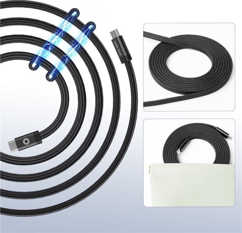 Ten szybko ładujący się, wytrzymały, magnetyczny kabel USB-C do USB-C o długości 1 m pozwala utrzymać porządek na biurku! Jego magnetyczna konstrukcja automatycznie zwija kabel w zgrabny okrąg, dzięki czemu idealnie nadaje się do domu, biura lub podróży. Kompatybilny z urządzeniami USB-C, zapewnia szybkie ładowanie i ma elegancką, opatentowaną konstrukcję w oplocie.
