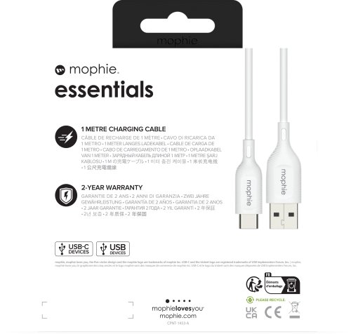 Kabel Mophie Essentials USB-A / USB-C o długości 1 metra w eleganckim białym kolorze to doskonałe rozwiązanie dla tych, którzy szukają niezawodnego i stylowego akcesorium do ładowania. Dzięki nowoczesnym technologiom oferowanym przez markę Mophie, ten kabel łączy w sobie funkcjonalność z estetyką, co czyni go idealnym wyborem dla każdego użytkownika.