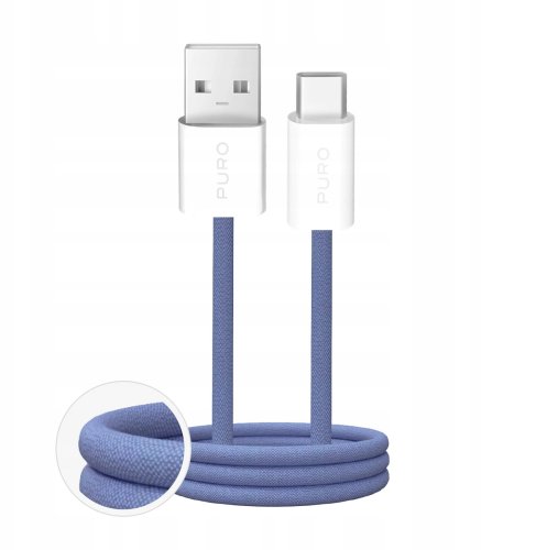 Kabel Puro Fabrik 2.0 10W USB-A - USB-C o długości 1,5 m w kolorze niebieskim to stylowe i praktyczne akcesorium, które łączy nowoczesny design z doskonałą jakością wykonania. Jego elegancki wygląd sprawia, że idealnie komponuje się w każdej przestrzeni, zarówno w domu, jak i w biurze.