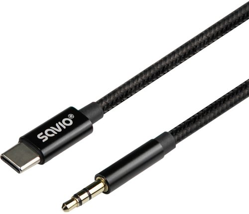 Kabel USB Savio USB-C - mini Jack 3.5 mm 1 m Czarny (Cl-187)