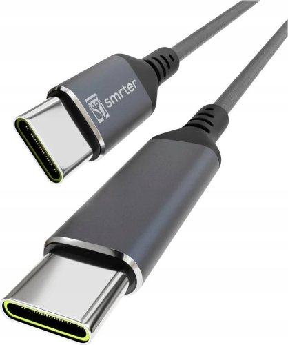 Kabel Smarter SPEEDY100 - Szybki kabel do przesyłu danych i ładowania o mocy 100 W Przyszłością łączności jest USB-C – nadejdzie czas, kiedy dla wszystkich urządzeń mobilnych będzie tylko jeden port. Zapomnij o długim czasie ładowania i ciesz się wydajnym przesyłem energii, który oszczędza czas i zwiększa produktywność. Kabel Smarter SPEEDY100 to kabel do ładowania i przesyłu danych USB-C o maksymalnej mocy ładowania 100 W i szybkości przesyłu danych do 480 Mbit/s. Oznacza to, że jesteś doskonale przygotowany na przyszłość. Wiele nowszych urządzeń można już ładować za pomocą USB-C. Postęp technologiczny przyszłościowego połączenia umożliwia nawet ładowanie urządzeń o dużej mocy, takich jak laptopy. Ale to nie wszystko, zaawansowany kabel umożliwia również przesyłanie danych lub wyświetlanie obrazu. Wbudowany najnowszej generacji chip E-Mark wcześniej sprawdza podłączone urządzenia i automatycznie określa optymalną wydajność, aby ładowanie lub przesyłanie danych było jak najbardziej skuteczne i bezpieczne. Synchronizacja danych Niezwykle szybka, sterowana chipem synchronizacja danych z prędkością do 480 Mbit/s. Przesyłaj zdjęcia, muzykę, filmy i inne pliki z urządzenia USB-C do komputera lub notebooka w ciągu zaledwie kilku sekund. Prąd ładowania Kabel umożliwia szybkie ładowanie smartfona, tabletu lub notebooka z mocą ładowania do 100 W i odpowiednimi protokołami szybkiego ładowania. Aby szczególnie szybko ładować smartfony, wymagane jest kompatybilne i wydajne źródło zasilania. Chipset E-Marka Wysokiej jakości chip E-Mark zapewnia szybkie i bezpieczne ładowanie urządzeń. Automatycznie kontroluje odpowiednie parametry zasilania i dostosowuje prędkość ładowania do podłączonego urządzenia. Solidny i stabilny Podwójnie izolowany i pokryty cienką tkaniną nylonową rdzeń kabla jest optymalnie chroniony przed przerwaniem kabla. Aluminiowa obudowa i złącza mają również wzmocnienie, które zapobiega uszkodzeniom. Dzielenie się energią OTG Funkcja OTG umożliwia łatwe dzielenie się energią między dwoma smartfonami. W ten sposób w sytuacji awaryjnej możesz przekazać swoim znajomym część energii własnego akumulatora. Jednak funkcja ta działa tylko w smartfonach, które obsługują OTG. Uwaga!