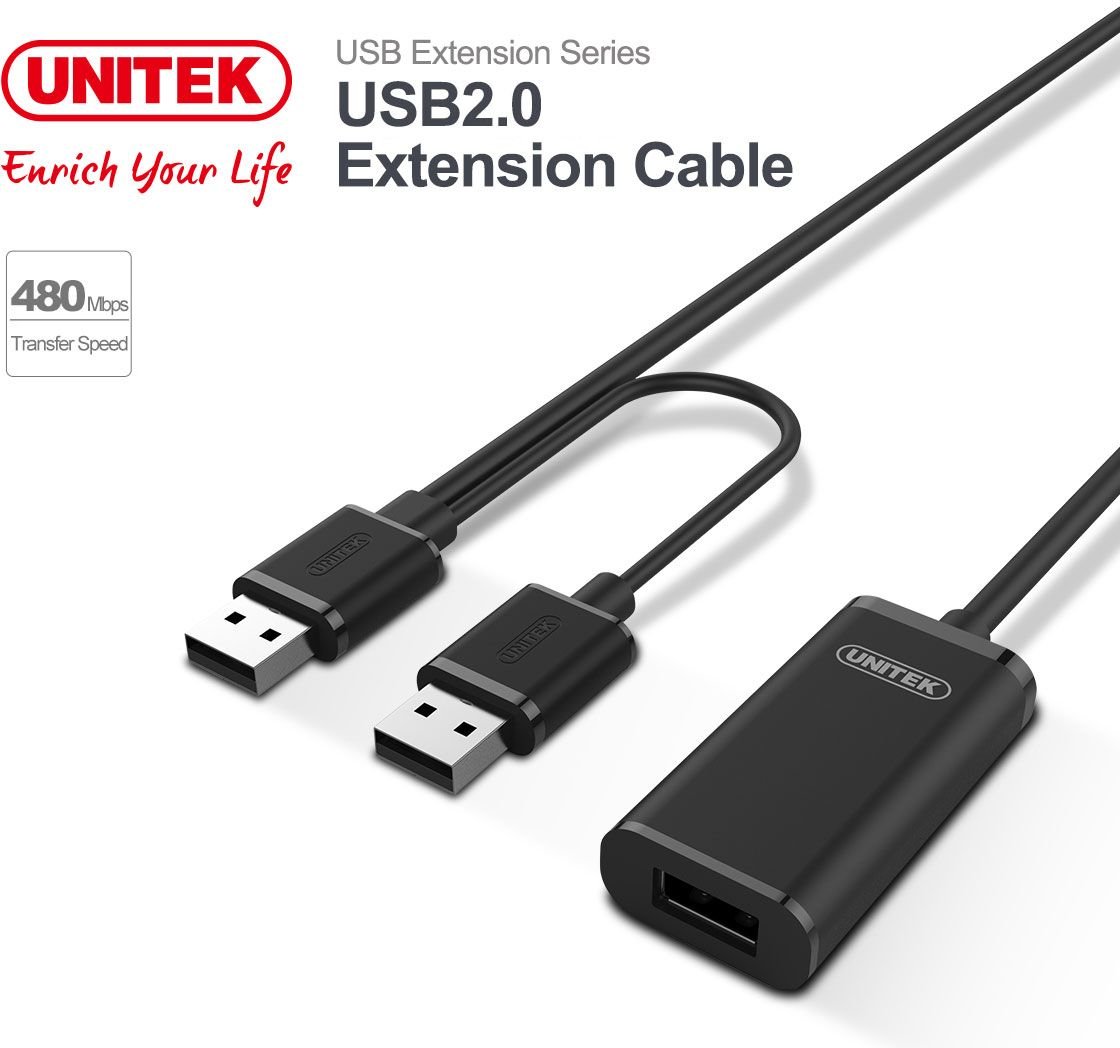 Kabel USB Unitek USB-A - USB-A 20 m Czarny (Y-279)