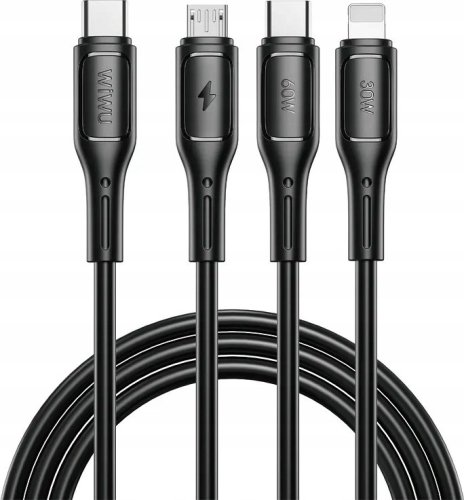 Kabel USB WiWU USB-C - USB-C + microUSB + Lightning 1 m Czarny