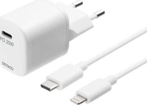 Kabel zasilający Deltaco USB sieninis įkroviklis, USB-C, PD 20 W, 1 m C - „Lightning“ USBC-AC141