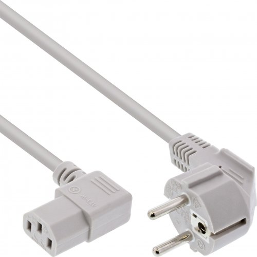 Kabel zasilający InLine InLine® Power cable, Schutzkontakt CEE7/7 angeled to 3pin IEC-C13 angeled, grey, 1.0m