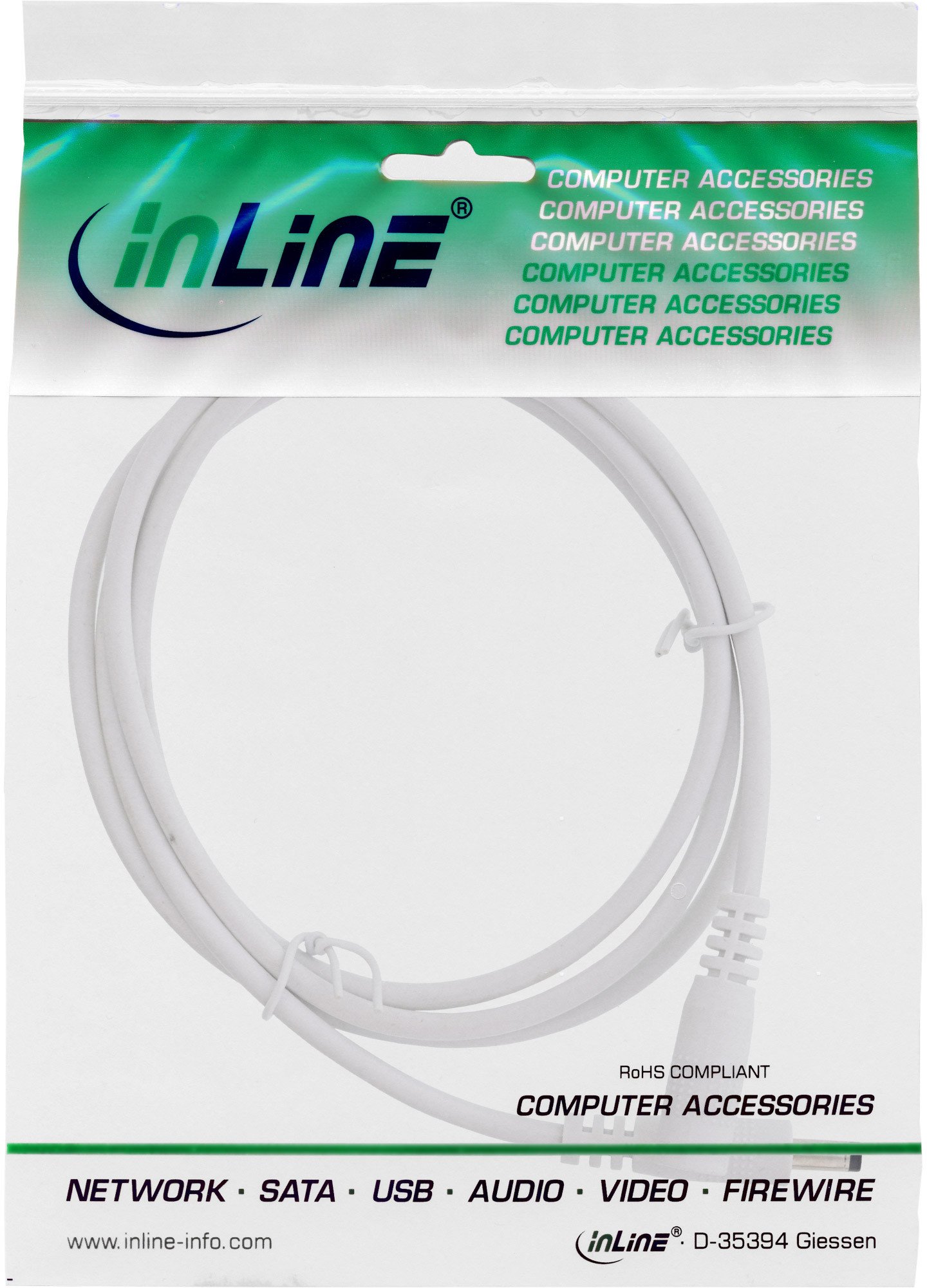 Kabel przedłużający DC InLine o długości 3 m, wyposażony w męskie i żeńskie wtyki EIAJ-02 (4,0 mm x 1,7 mm), to znakomite rozwiązanie do wydłużania połączeń zasilających. Jego długość zapewnia wygodę oraz elastyczność w użytkowaniu, co czyni go idealnym wyborem zarówno do zastosowań w domach, jak i biurach.