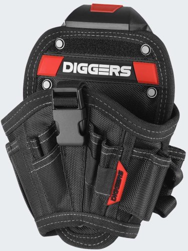 Torba narzędziowa Diggers wyróżnia się wzmocnioną konstrukcją nitami, co zapewnia jej trwałość oraz odporność na uszkodzenia. Innowacyjny system mocowania Quick Click umożliwia łatwe przymocowanie kabury do pasa narzędziowego, co znacznie ułatwia pracę w terenie.