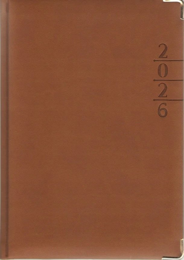 Kalendarz 2026 A5 dzienny Lux w brązowym, złoconym wydaniu to elegancki terminarz, który harmonijnie łączy funkcjonalność z estetyką. Wykonany z materiałów najwyższej jakości, stanie się niezastąpionym towarzyszem w codziennym planowaniu. Jego klasyczny design doskonale wpisuje się zarówno w biurowe, jak i domowe wnętrza.