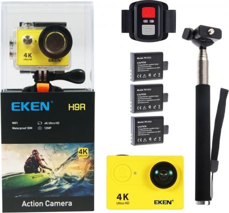 Kamera Eken KAMERA SPORTOWA EKEN H9R ULTRA HD4K- 3XBATERIA+RC+KIJ | ŻÓŁTA