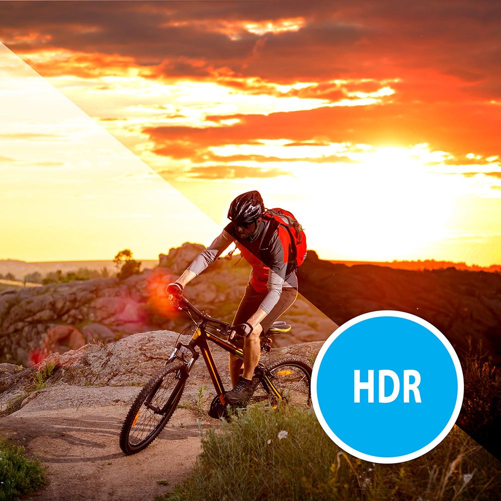 HDR (Wysoki Zakres Dynamiki) automatycznie dostosowuje się do warunków: przyciemnia prześwietlone obszary a niedoświetlone rozjaśnia.