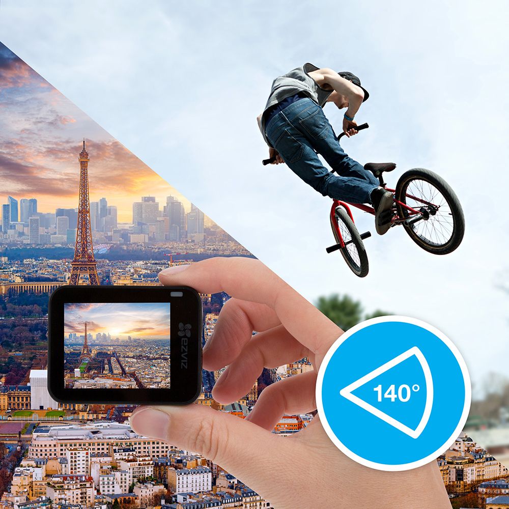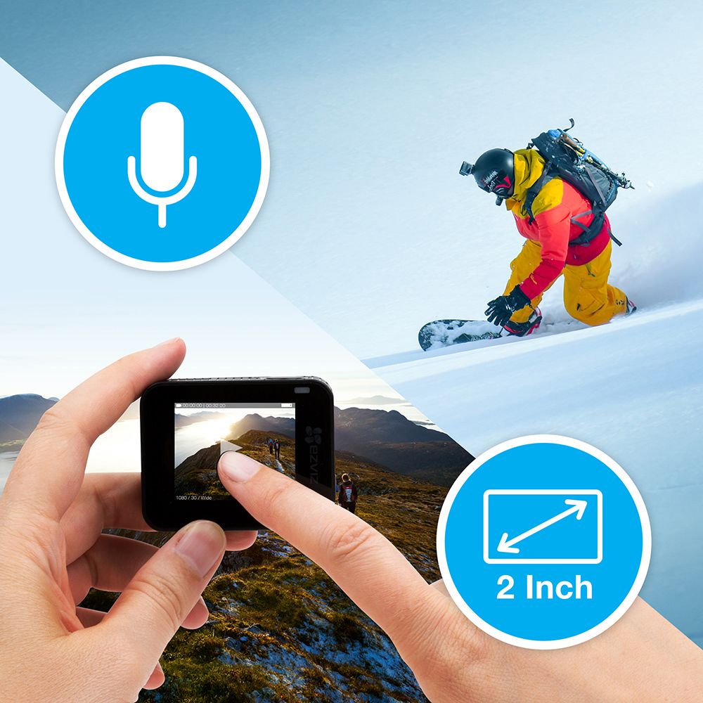 Podglądaj i odtwarzaj zdjęcia i filmy używając ekranu dotykowego. Jest tak łatwy do ustawienia i zarządzania jak Twój smartfon. Podwójny mikrofon uchwyci dźwięki, które chcesz a zredukuje zbędny szum np. wiatru.