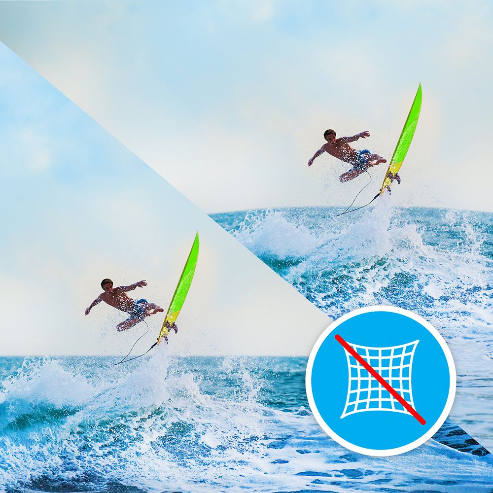 Korekcja zniekształceń automatycznie filtruje z obrazu szum i ziarnistość oraz zapewnia realistyczny obraz bez efektu rybiego oka.