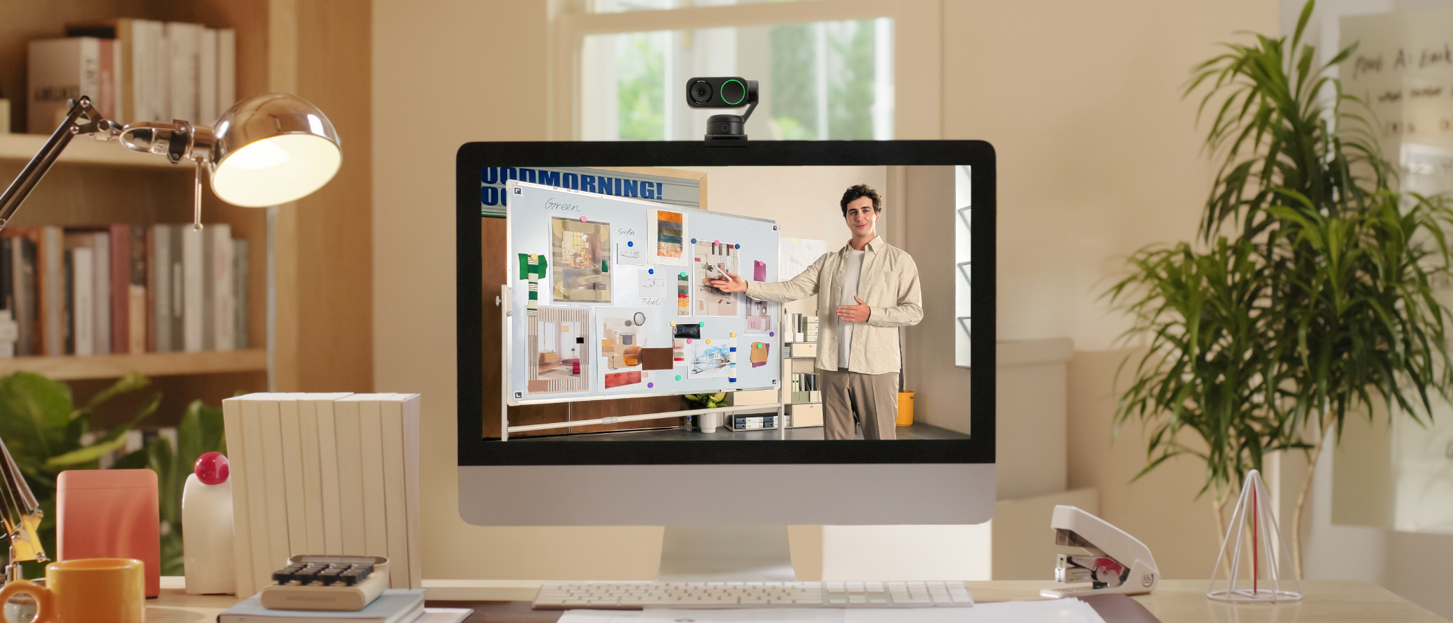 Tryb rozpoznawania tablic jednym gestem pozwoli Ci na zmianę punktu widzenia kamery tak, aby skupić się w pełni na twojej prezentacji na tablicy, tryb blatu wykadruje obraz tak, aby widoczne było to co masz na biurku przed sobą i automatycznie obróci obraz co ułatwi prezentację schematów, rysunków czy innych prac. W programie na komputery osobiste zwiększysz rozmycie tła lub wymienisz je na inne otoczenie, nałożysz kreatywne efekty czy nawet się pomalujesz dzięki funkcji "One Click Make-up"!