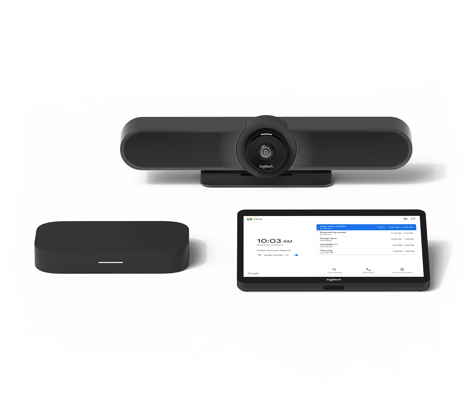 Dzięki sterownikowi dotykowemu, zewnętrznemu panelowi do planowania spotkań oraz sterowaniu głosowemu Logitech i Google Meet sprawiają, że znalezienie spotkania i dołączenie do niego staje się coraz prostsze.