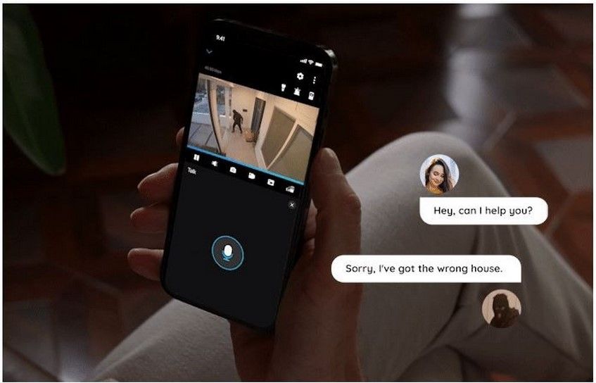 Rozmawiaj w czasie rzeczywistym z osobami znajdującymi się obok kamery, niezależnie od tego, gdzie jesteś, aby zareagować na czas. Przywitaj swoich gości lub odstraszaj niepożądane osoby.