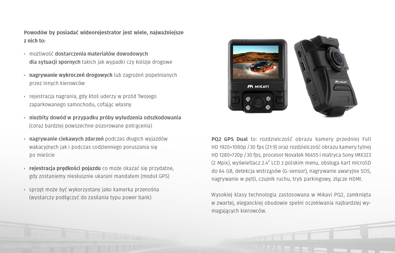 Wideorejestrator Mikavi PQ2 GPS DUAL