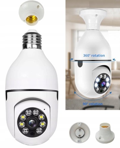 Kamera szpiegowska niania żarówka WiFi IP E27 obrotowa