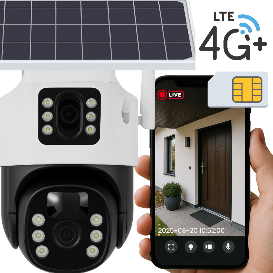 KAMERA ZEWNĘTRZNA OBROTOWA NA KARTĘ SIM GSM LTE 4G SOLARNA DO MONITORINGU