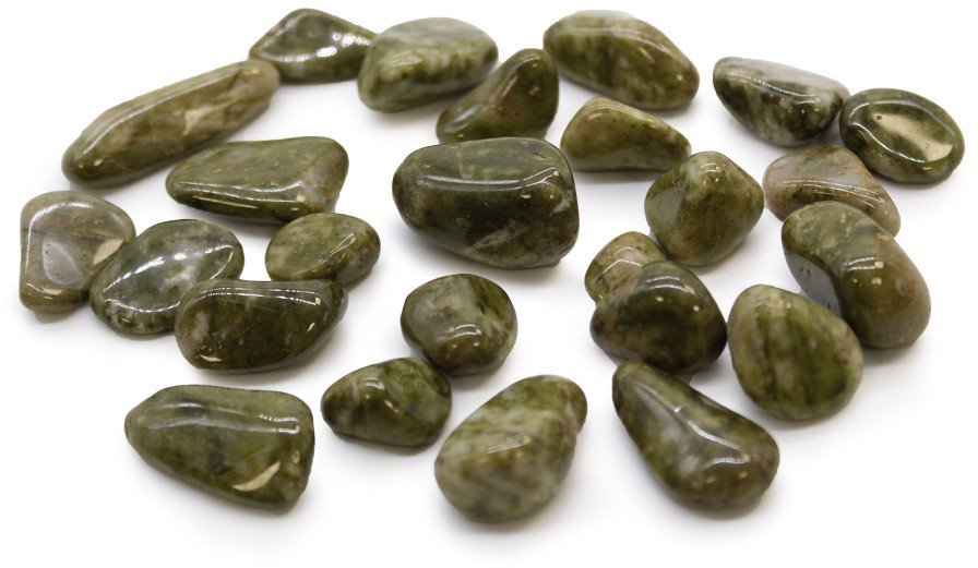 Kamień Afrykański Mały – Epidot Snowflake | 24 sztuki. Waga 100 g. Afryka to kontynent bardzo bogaty w surowce mineralne, dzięki czemu tylko tam znajdziemy tak wiele pięknych i unikalnych kamieni szlachetnych. O ich zadziwiającym i ekscytującym uroku decyduje ich niepowtarzalność kolorystyczna. Na etapie produkcji są one polerowane dzięki czemu mogą być powszechnie używane do celów dekoracyjnych lub metafizycznych. Powstają poprzez umieszczenie szorstkich kamieni w maszynie zwanej bębnem, która wykorzystuje szereg materiałów ściernych do polerowania i wygładzania kamieni, aż staną się okrągłe i błyszczące. Rezultatem jest kolekcja kamieni, które idealnie nadają się do wykorzystania w rzemiośle, tworzeniu biżuterii lub jako elementy dekoracyjne.