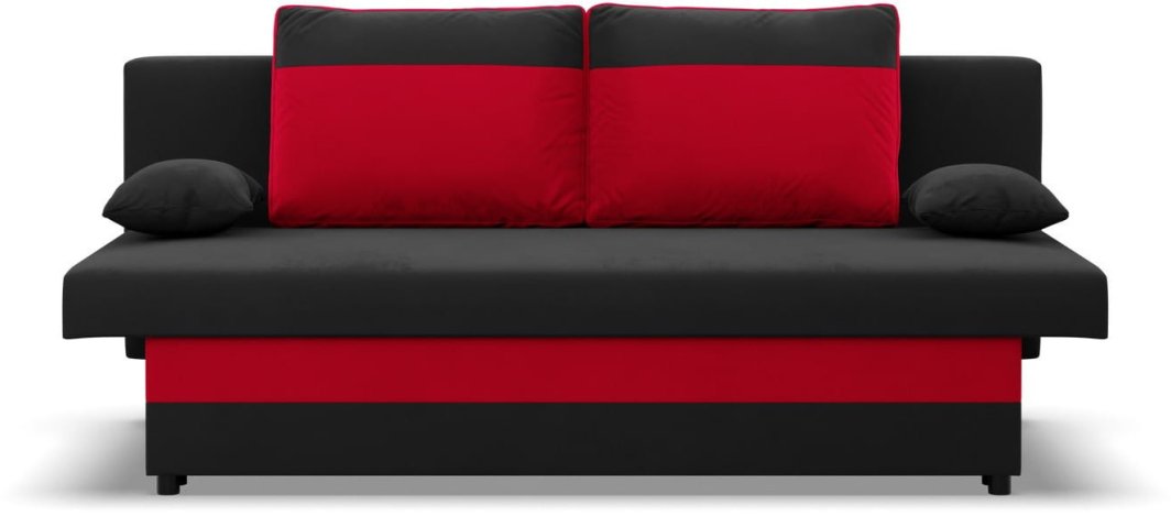Kanapa, funkcja spania, Hugo, 191x91x92 cm, czarny, czerwony | TYLETEGOTU