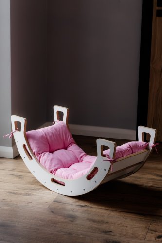 Poduszka do bujaka Montessori M różowa nie tylko umila czas zabawy, ale również staje się idealnym miejscem do krótkich drzemek. Dzięki niej bujak zyskuje na funkcjonalności, tworząc przytulne miejsce, w którym maluch może się zrelaksować.
