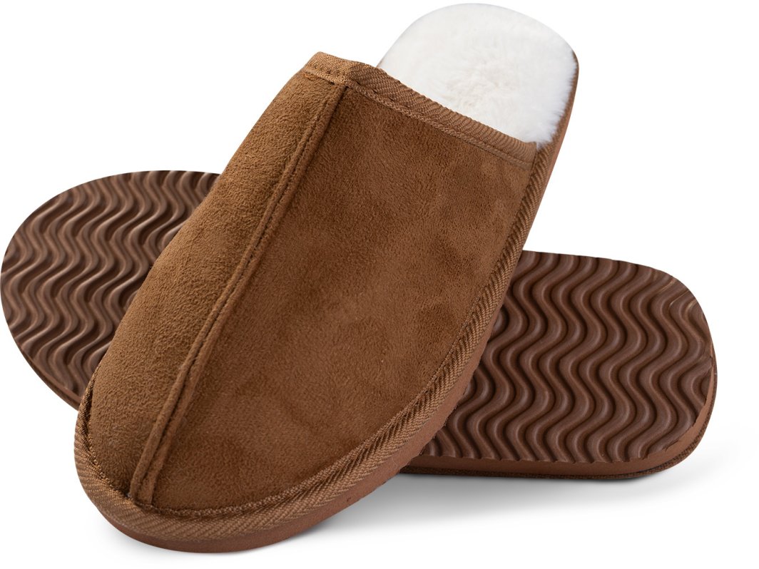 Kapcie zostały wykonane z wysokiej jakości poliestru, co zapewnia ich długowieczność. Guma użyta do produkcji podeszwy gwarantuje dobrą przyczepność i stabilność, co jest szczególnie istotne w domowych warunkach. Kolor brązowy sprawia, że kapcie łatwo dopasują się do różnych stylizacji.
