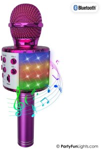 Różowy mikrofon karaoke z wbudowanym głośnikiem to znakomity wybór na każdą imprezę. Dzięki efektom świetlnym, które reagują na dźwięk, stworzysz niezapomnianą atmosferę podczas karaoke. To idealna propozycja dla pasjonatów muzyki, którzy pragną zabłysnąć na scenie!