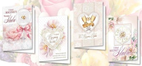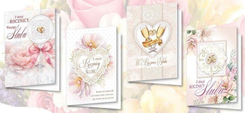 Każda kartka wyróżnia się delikatnymi wzorami, takimi jak kwiaty, serca, obrączki i kieliszki, które symbolizują miłość oraz trwałość związku. Dodatkowo, holograficzne folie oraz złocenia nadają kartkom wyjątkowego blasku, sprawiając, że stają się one nie tylko nośnikiem życzeń, ale również piękną dekoracją.