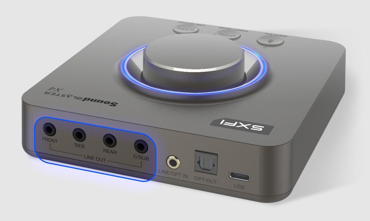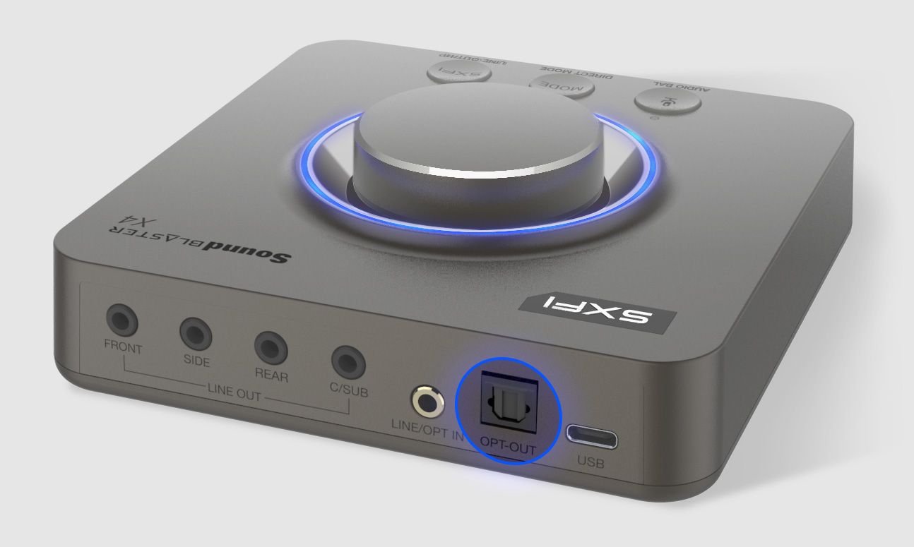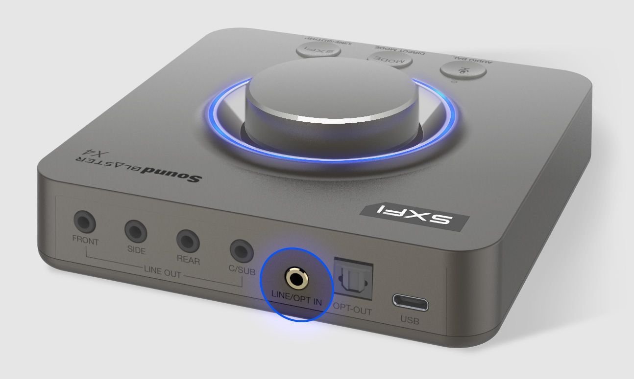 Posłuchaliśmy opinii użytkowników: w zewnętrznej karcie Sound Blaster X4 jest teraz dostępne wejście optyczne. Dzięki karcie Sound Blaster X4 i jej 7 złączom wejścia / wyjścia podłączenie wielu urządzeń audio jest teraz znacznie łatwiejsze! Od mikrofonów zewnętrznych i zestawów słuchawkowych po platformy takie jak komputer PC, Mac, konsole do gier, a nawet wielokanałowe systemy głośników — praktycznie przekształca to konfigurację biurkową w koncentrator audio.