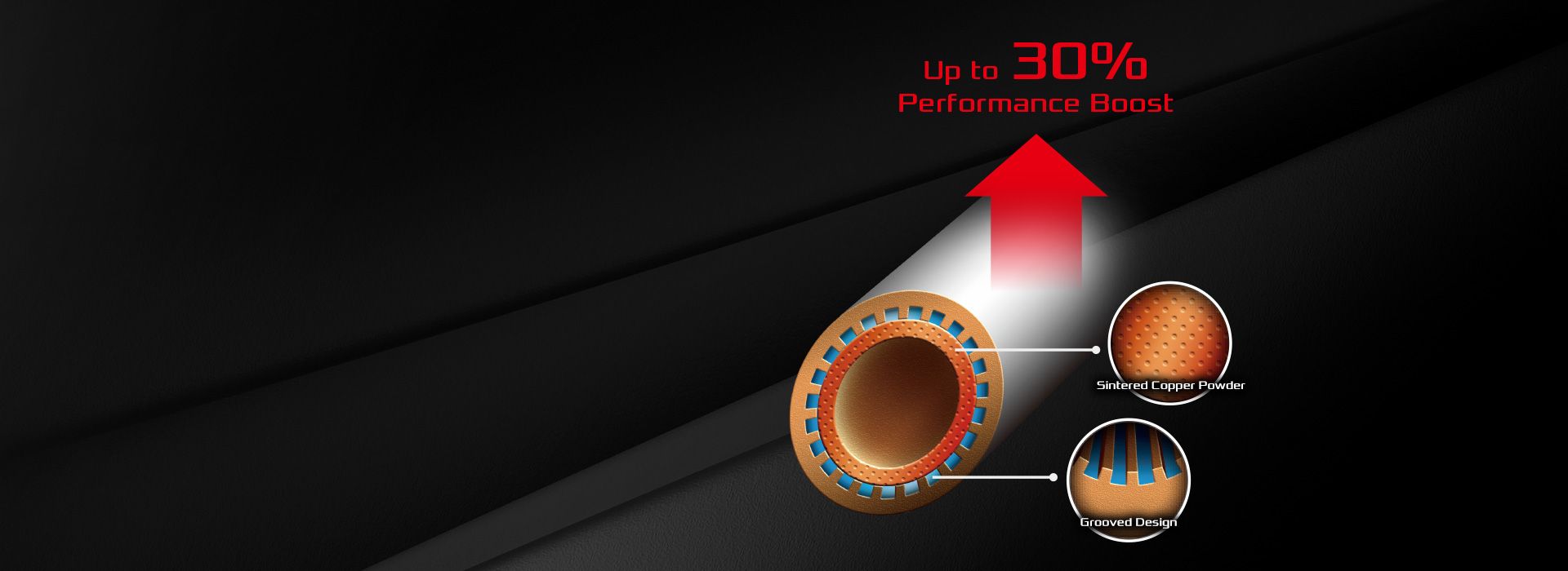 W połączeniu z rowkowanymi i miedzianymi interfejsami spiekania proszkowego, kompozytowa konstrukcja ciepłowodów skutecznie poprawia przenoszenie ciepła między dwoma stałymi interfejsami i zwiększa wydajność chłodzenia do 30%.