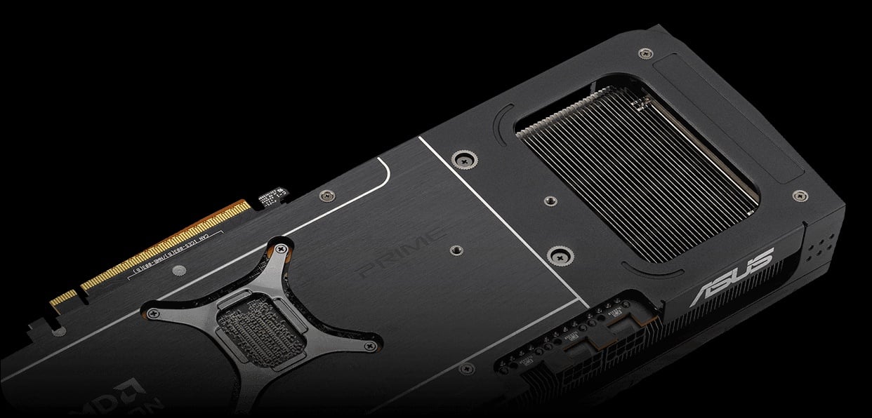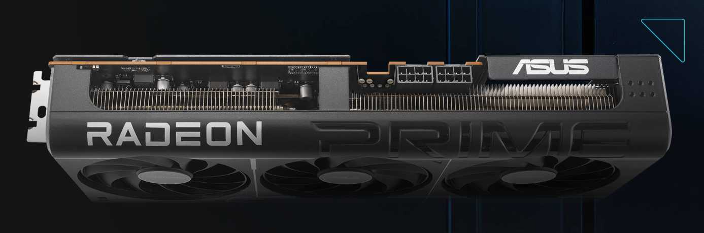 Karta graficzna Prime Radeon RX 9070 jest oparta na konstrukcji 2,5-slotowej ze starannie opracowanym układem z osłoną, radiatorem i rurkami cieplnymi. Pozwala to trzem wentylatorom Axial-tech wykorzystywać wentylację z panelu bocznego obudowy i zapewniać wysoką optymalną wydajność chłodzeni.