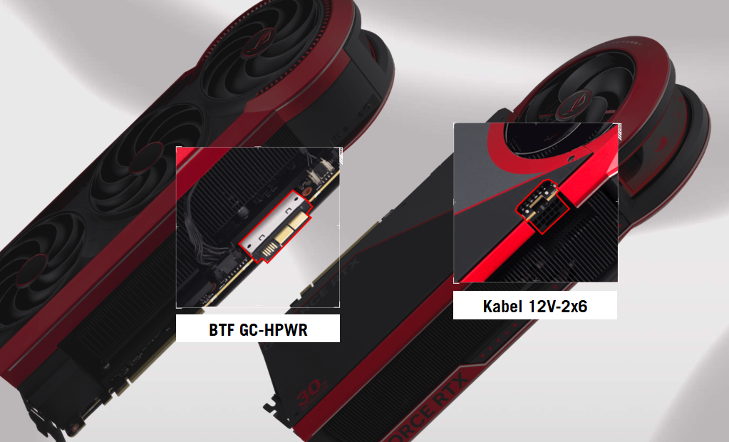 Wyposażona w przełomową konstrukcję z dwoma wejściami zasilania, karta ROG Matrix RTX 5090 może pobierać do 800 W po podłączeniu zarówno do zaawansowanej płyty głównej BTF za pośrednictwem adaptera BTF Graphics Card High-Power Adapter, jak i bezpośrednio do zasilacza za pośrednictwem kabla 12V-2x6. To innowacyjne podejście uwalnia pełny potencjał karty, zapewniając do 10% więcej miejsca na najbardziej wymagające gry i podkręcanie.