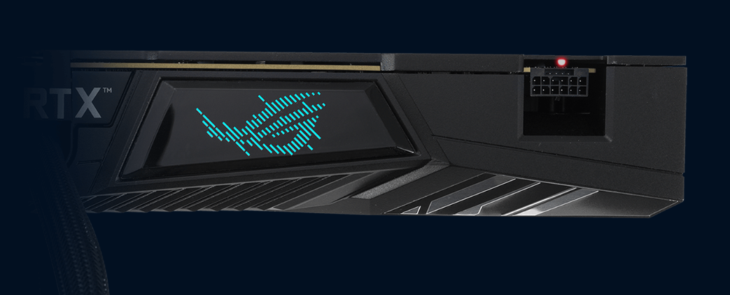 Dowiedz się, czy Twój zasilacz jest godny. Karty graficzne ROG Strix LC GeForce RTX™ 4090 są wyposażone w szybki obwód, który stale monitoruje moc wejściową z zasilacza i wykorzystuje wygodnie rozmieszczone diody LED do sygnalizowania problemów z regulacją napięcia i problemów z połączeniem kablowym.