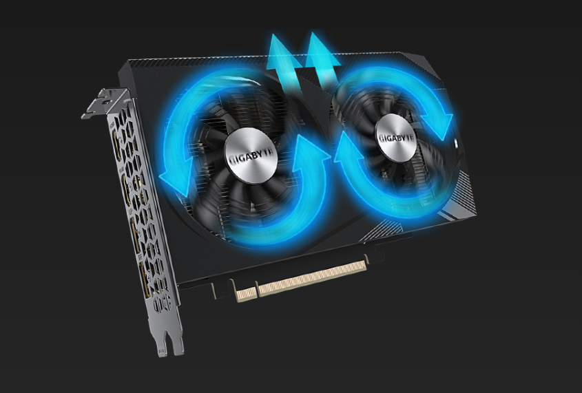 Aktywny wentylator 3D zapewnia półpasywne chłodzenie, a wentylatory pozostaną wyłączone, gdy procesor graficzny będzie pracował przy niskim obciążeniu lub niskim poborze mocy. Pozwala graczom cieszyć się rozgrywką w całkowitej ciszy, gdy system działa słabo lub jest bezczynny.