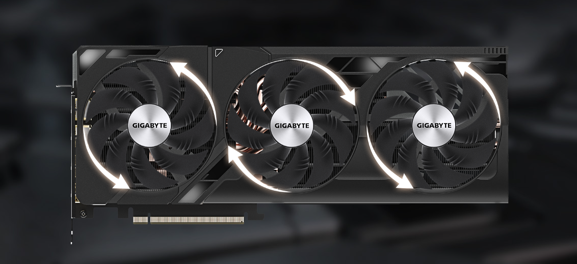 Każdy z wentylatorów Windforce został zaprojektowany w celu odpowiedniego przesuwania mas powietrza. Przejawia się to przez odpowiednio zaprojektowane rowki oraz krawędzie, które wspomagają ruch powietrza w układzie i poprawiają jego przepływ. W samych wentylatorach wykorzystano podwójne łożyska kulkowe, które wykazują się wyższą odpornością na ciepło oraz mają podwyższoną wydajność i żywotność.