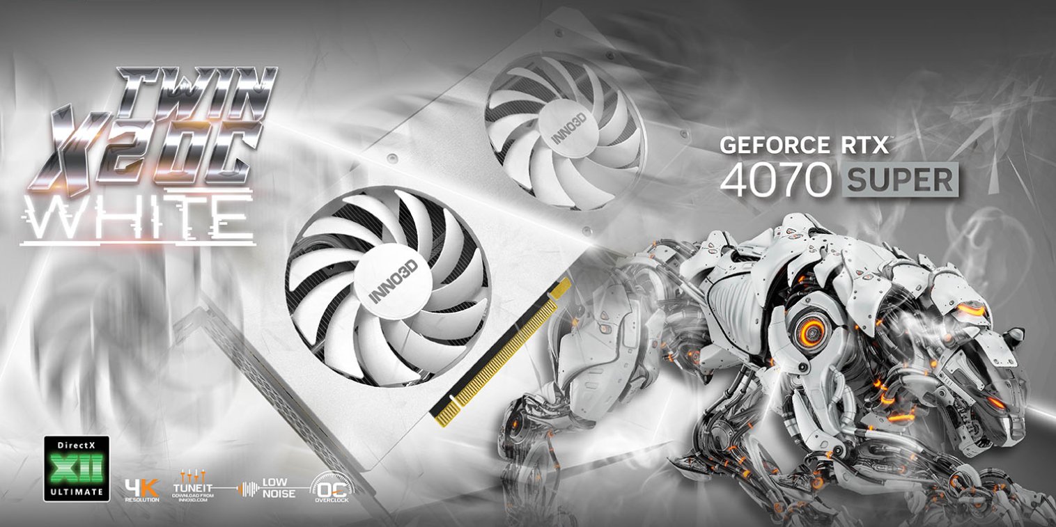 Karta graficzna Inno3D GeForce RTX 4070 SUPER Twin X2 OC White 12GB GDDR6X (N407S2-126XX-186162W)