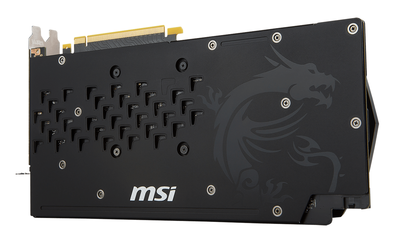 Potężna karta graficzna po to, aby można było w pełni skorzystać z jej wydajność, wymaga również zastosowania odpowiednio mocnej konstrukcji mechanicznej. Karty graficzne z serii MSI GAMING X wyposażone są w solidne, wykonane z litego metal płyty tylne, które służą do wzmocnienia i usztywnienia ich konstrukcji. Czarne, matowe wykończenie tych płyt perfekcyjnie domyka stylistykę systemu chłodzącego TWIN FROZR VI.