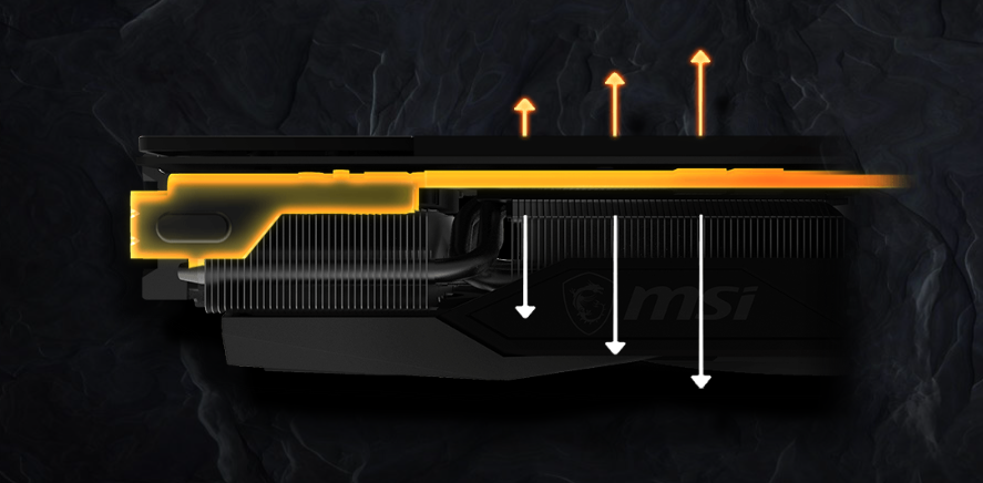 System termiczny TRI FROZR 2 został zaprojektowany z myślą o wydajności. Spodziewaj się idealnej równowagi między chłodem a ciszą, aby uzyskać więcej zabawy podczas niekończących się sesji grania. TORX FAN 4.0 opiera się na pracy zespołowej, z parami łopatek wentylatora połączonych ze sobą zewnętrznym pierścieniem, który skupia przepływ powietrza w zaktualizowanym systemie chłodzenia TRI FROZR 2. Rury rdzeniowe są precyzyjnie obrobione, aby zapewnić maksymalny kontakt z procesorem graficznym i rozprowadzać ciepło wzdłuż całej długości radiatora, zapewniając optymalne chłodzenie. Pozostań niewidoczny dzięki kontroli przepływu powietrza, która poprawia dynamikę przepływu powietrza. Deflektory zapewniają dodatkową powierzchnię i kierują powietrze tam, gdzie jest ono potrzebne do maksymalnego chłodzenia. Zakrzywione krawędzie płetw 2.0 zakłócają niepożądane harmoniczne przepływu powietrza, powodując zmniejszenie hałasu.