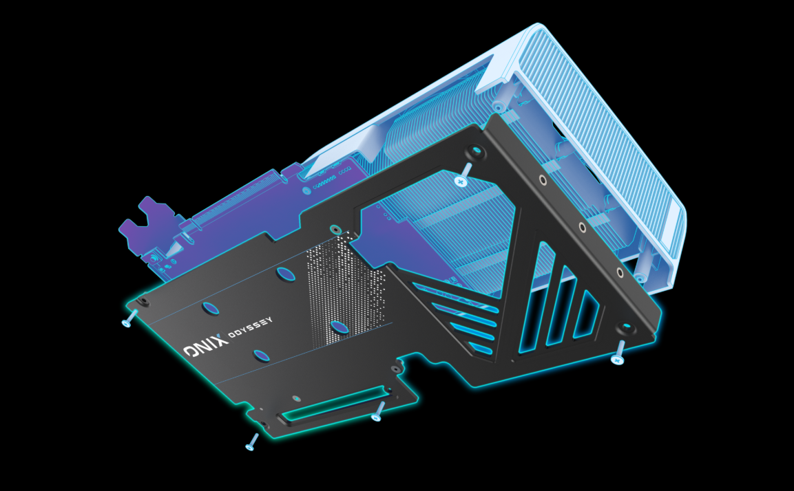 ONIX ODYSSEY B580 charakteryzuje się eleganckim, matowo-czarnym wykończeniem i solidną aluminiową płytą tylną, co nadaje jej nowoczesnego i wyrafinowanego wyglądu. Ten stonowany design pozwala karcie idealnie wtopić się w estetykę każdego zestawu komputerowego. Aluminiowa płyta tylna nie tylko wzmacnia konstrukcję karty, ale także wspomaga efektywne rozpraszanie ciepła, co ma kluczowe znaczenie dla długotrwałej niezawodności. Ta przemyślana estetyka łączy się z funkcjonalnością, zapewniając spójny i potężny wygląd konfiguracji.
