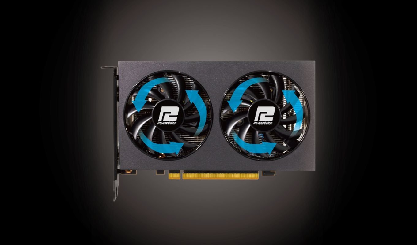 Karta graficzna PowerColor Radeon™ RX 6500 XT Fighter jest wyposażona w podwójny system chłodzenia z wentylatorami 80 mm, dzięki czemu jest chłodna i cicha. To idealny wybór dla każdego, kto chce grać bez rozpraszania uwagi.