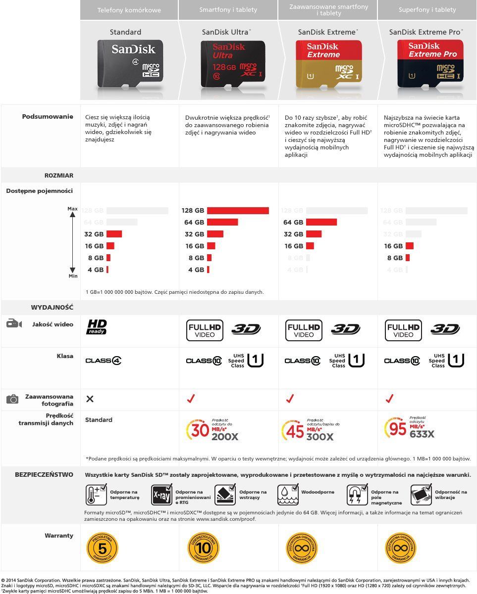 | Pojemność nominalna | Pojemność rzeczywista | Liczba zdjęć1 | Liczba plików mp32 | Liczba minut filmów FullHD3 |