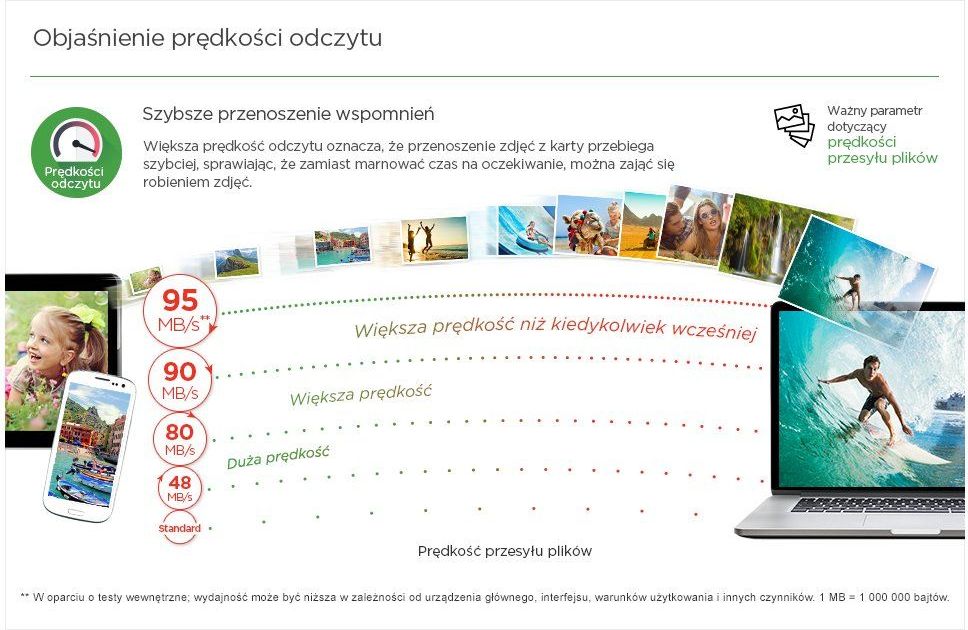 Karta pamięci o pojemności 32 GB pozwoli na przechowywanie sporej liczby plików zawsze pod ręką. Zapewnia ponadto doskonały stosunek użyteczności do ceny, gdyż karty o tej pojemności obecnie nie są drogie, a zapiszesz na niej wszystkie swoje niezbędne pod ręką pliki, nawet wideo w wysokiej rozdzielczości. Karty tego typu umożliwiają zapisanie wielu zdjęć podczas sesji fotograficznych.