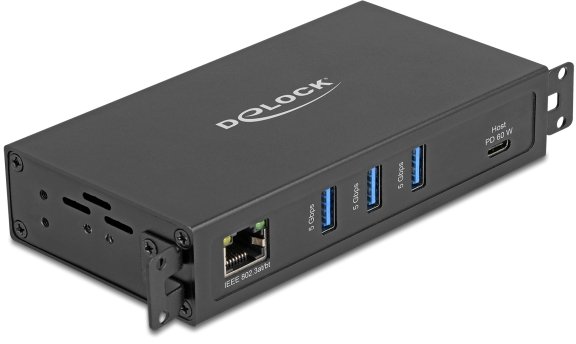 Karta sieciowa Delock 3 Port USB 5 Gbps Hub + RJ45 Gigabit LAN PoE++ Port złącze hosta USB Type-C™ w obudowie metalowej i 1,5 kV Isolation