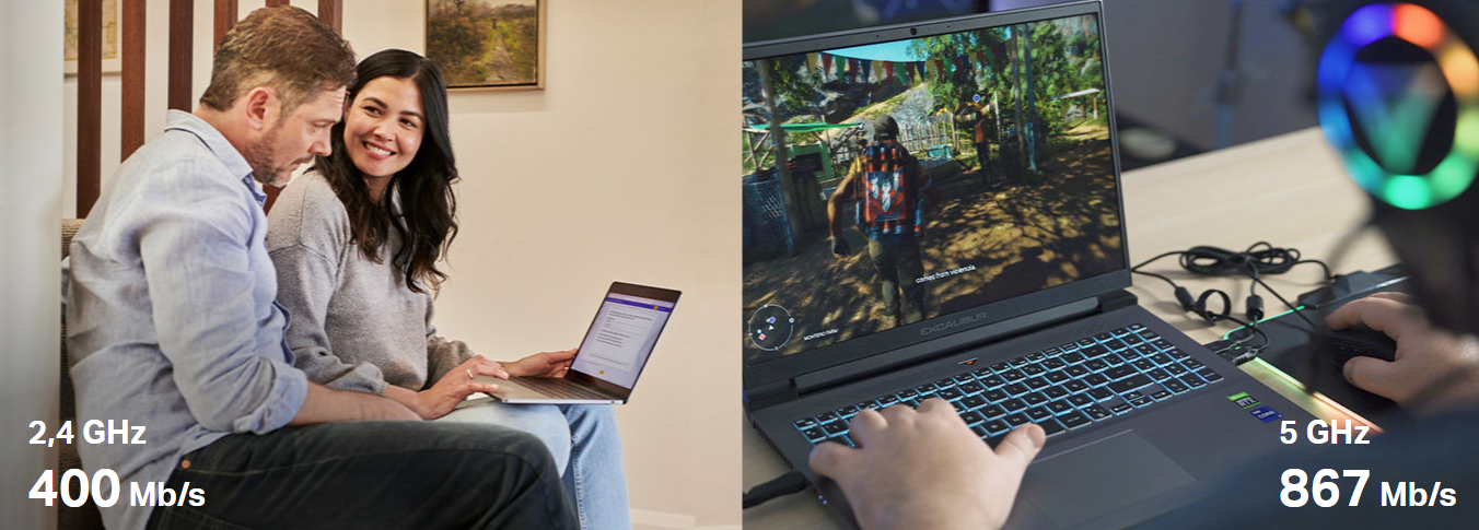 Karta sieciowa MA30N oferuje prędkość do 400 Mb/s w paśmie 2,4 GHz (przeglądanie internetu i pisanie maili) oraz do 867 Mb/s w paśmie 5 GHz (strumieniowanie HD i gry online).