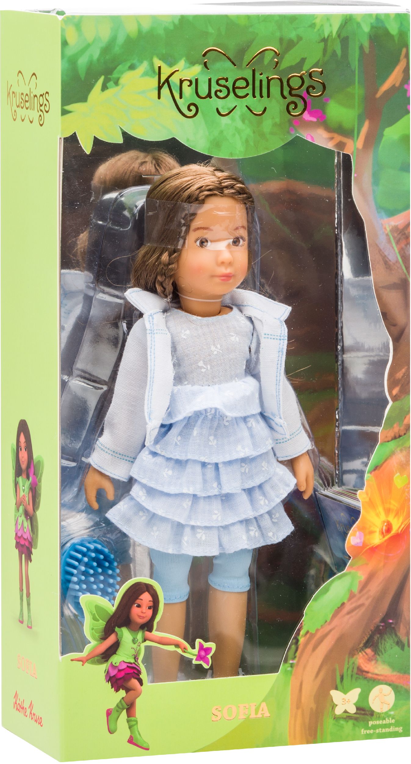 Pudełko zawiera 23 cm lalkę Kruselings w codziennym ubraniu. Sofia ma na sobie niebieską marszczoną sukienkę, kurtkę i pasujące do niej legginsy i białe trampki. Przynosi własną szczotkę do włosów. Lalka jest wykonana z wysokiej jakości winylu, z przegubowymi przegubami i realistycznymi szklanymi oczami. Odpowiedni dla dzieci od 36 miesięcy