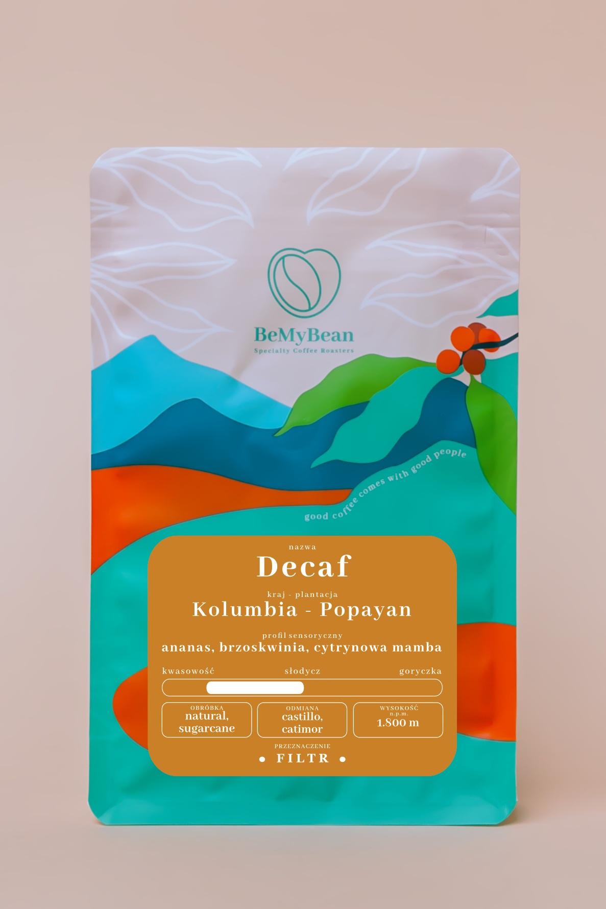 Kawa ziarnista BeMyBean Decaf Kolumbia Popayan Filtr 250 g