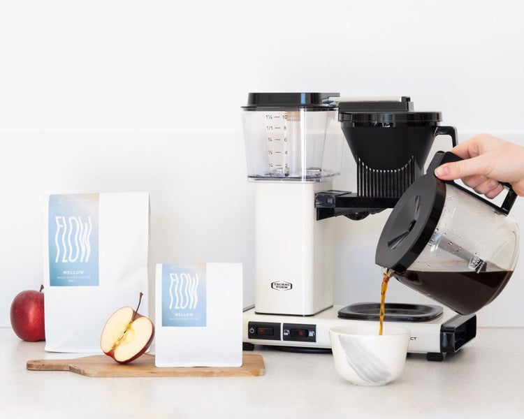 FLOW Mellow najprościej zaparzysz w ekspresie przelewowym – nieważne, czy to Moccamaster czy Melitta – kawa z nich będzie równie smaczna! Stosuj proporcję 6 g kawy na 100 ml niskozmineralizowanej wody i daj się ponieść bezkofeinowej flow.