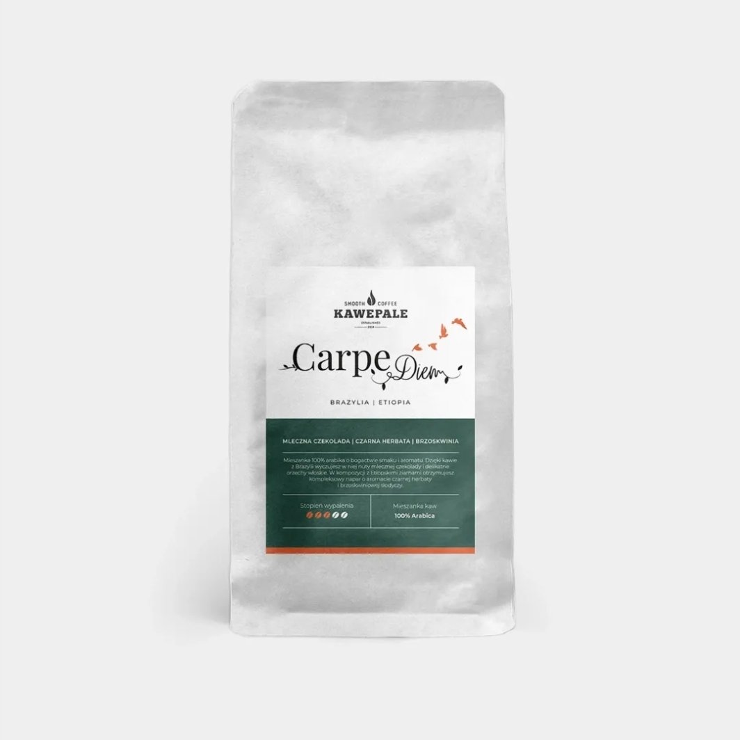 Kawa ziarnista Carpe Diem to niezwykła mieszanka 100% arabiki, która przenosi Cię na najlepsze plantacje w Brazylii i Etiopii. Każdy łyk tej kawy to prawdziwa chwila przyjemności, zachwycająca bogactwem aromatów i smaków, oferująca niezapomniane doznania.