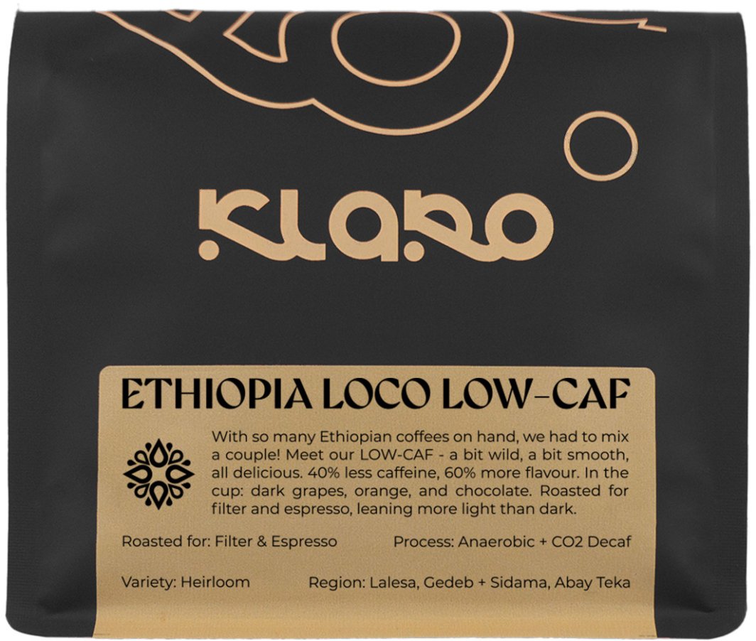 Kawa ziarnista Klaro - kawa ziarnista niskokofeinowa Etiopia LOCO LOW-CAF Omniroast 250 g